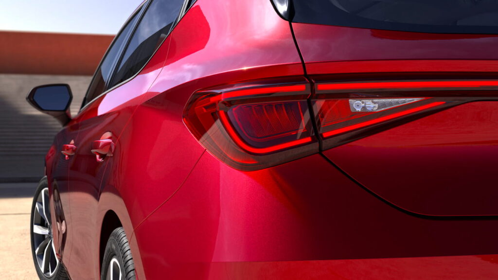 W wyglądzie SEATa Leona dominują ostre, dynamiczne przetłoczenia, które sprawiają, że samochód wygląda, jakby był w ruchu. Centralnym punktem, który zwraca uwagę każdego jest jest nowoczesna osłona chłodnicy z przodu z motywem plastra miodu, która w połączeniu z agresywnie zarysowanymi reflektorami Full LED nadają samochodowi sportowego wyrazu — SEAT Leon wyróżnia się dzięki temu na ulicy.