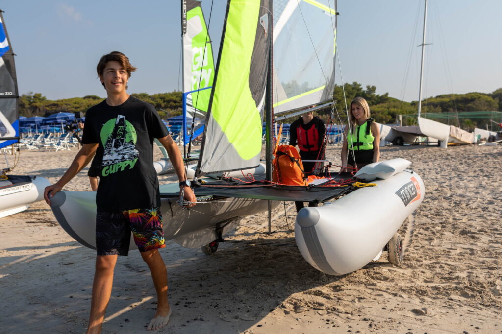 Gdy chcecie zwolnić tempo, postawcie na stabilność i przestrzeń. Katamaran to w praktyce „pływający taras”: łatwo wsiąść, przesiąść się, zjeść kanapkę, a konstrukcja nie reaguje nerwowo na każdy ruch pasażerów. Dla rodzin to ogromny komfort – szczególnie gdy na pokładzie są dzieci, pies albo ktoś, kto nie przepada za przechyłami. Zyskujecie też swobodę: możecie podpłynąć do spokojnej zatoczki, zrobić postój na wodzie i po prostu pobyć razem.