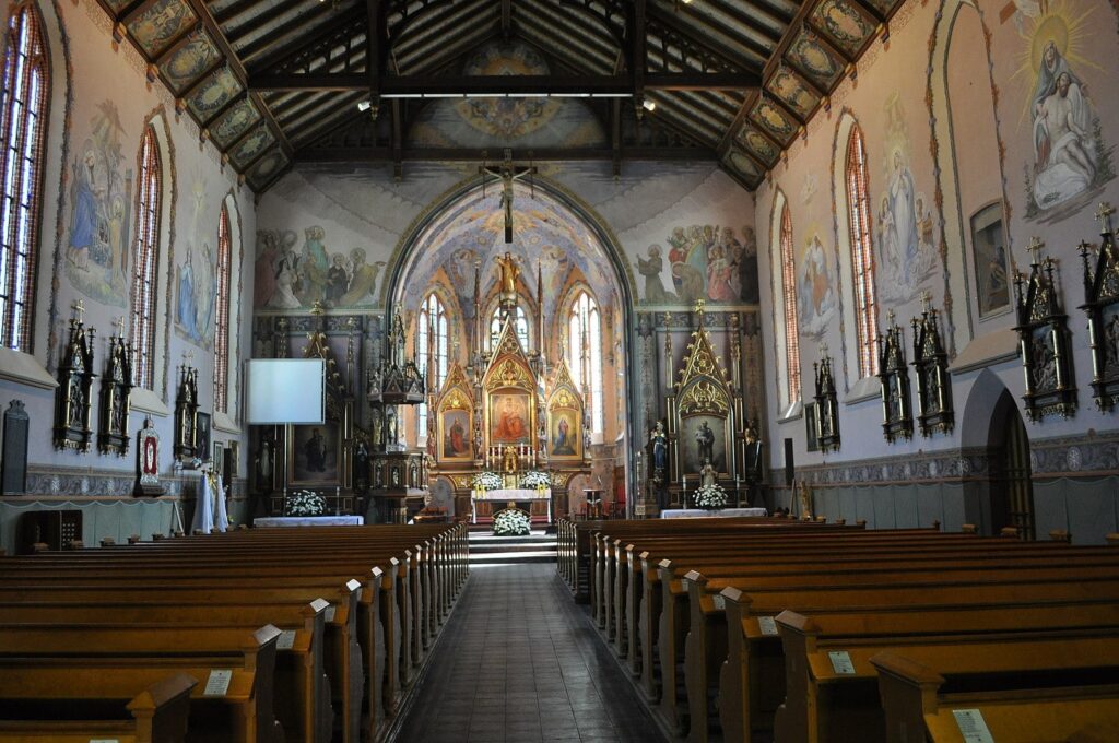 Jednym z najważniejszych zabytków tej wsi jest Kościół Narodzenia Najświętszej Maryi Panny w Swarzewie. Obecna świątynia jest trzecią z kolei wzniesioną we wsi, a wybudowano ją w XIX w. jako znacznie większą w stosunku do poprzedniej. Obiekt powstał w stylu neogotyckim, jako kościół halowy. Wieża ma wysokość 40 metrów i stanowi punkt orientacyjny z wód Zatoki Puckiej. Przy kościele funkcjonuje sanktuarium maryjne, z którym wiąże się legenda o cudownym uratowaniu marynarzy ze sztormu. W kościele znajduje się figura Matki Bożej słynąca z cudów. Oprócz tego wisi tu XVII-wieczny obraz-mapa, który ukazuje historię figury i deska z polskim tekstem wierszowanym Krótkie opisanie z 1775. Ołtarz główny pochodzi z drugiej połowy XVIII wieku (marmur i alabaster). Sceny z życia Matki Bożej ukazuje polichromia.